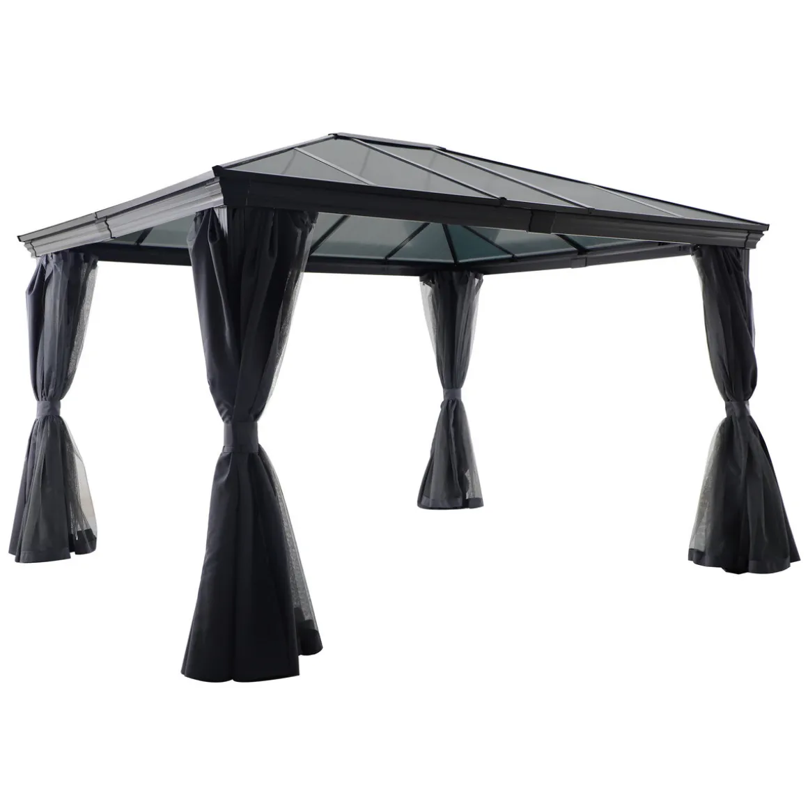 Pérgola BELIZE gris graphite 3×3,6m | Cortinas Y Mosquiteras Incluidas | Aluminio, Policarbonato | Única y elegante, ¡la pérgola de policarbonato Belize será un éxito en tu jardín! Su techo de policarbonato transparente aportará sin duda una nota de originalidad a su espacio exterior, preservándolo al mismo tiempo del sol | Para una protección óptima, esta pérgola de jardín está equipada con cuatro cortinas de poliéster y cuatro mosquiteras | Color: Gris grafito | Medidas: 2.7x3x3.6m | Material: Aluminio, Policarbonato | Marca: Hespéride