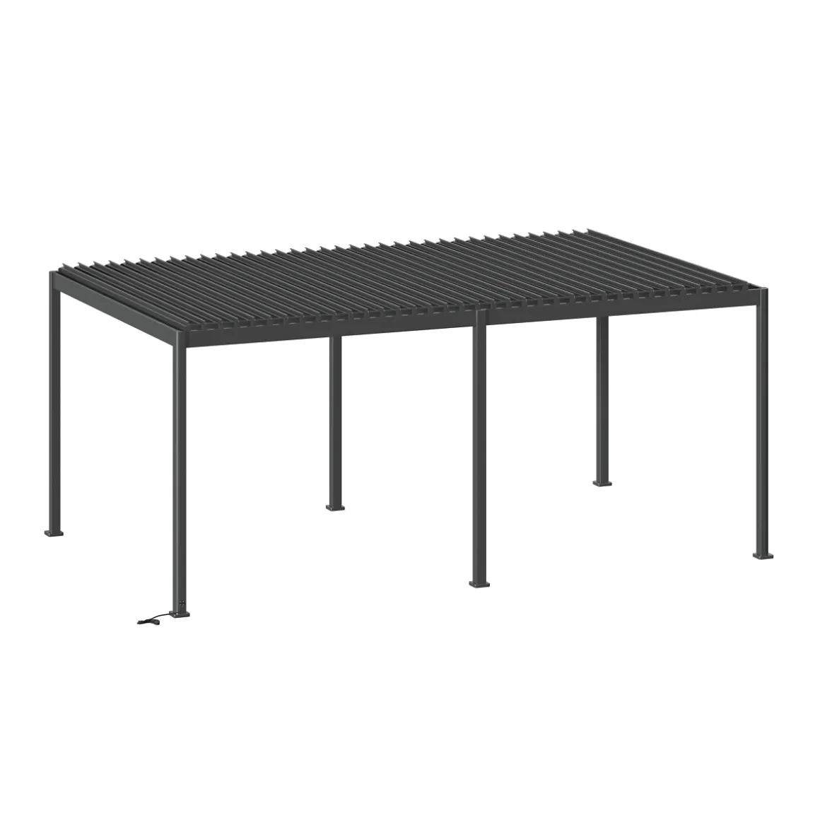 Pérgola ÉVORA gris grafito 3.6×3.6m | Apertura de lamas eléctrica | Lamas regulables por mando a distancia. Los juegos de cortinas/mosquiteras y persianas se venden por separado. El agua drena por la base de los pies | Color: Grafito | Medidas: 250x360x600cm | Material: Aluminio | Marca: Hespéride