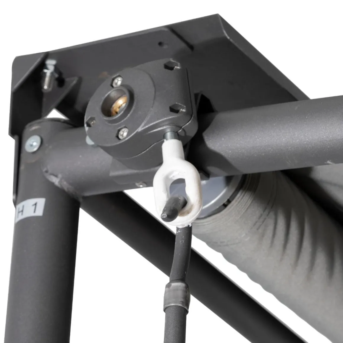 Pérgola MADERE gris ardósia | 4x3x2.8m | Estructura de acero con tratamiento epoxi anticorrosivo y cubierta de poliéster resistente a los rayos UV, impermeable para que no se filtre el agua | Las cortinas se ajustan a la altura que desee mediante un sistema de manivela | Fácil de montar, combina perfectamente con el conjunto de jardín Axiome | Color: gris ardósia | Medidas: 4x3x2.8m | Material: Acero, Poliéster | Marca: Hespéride