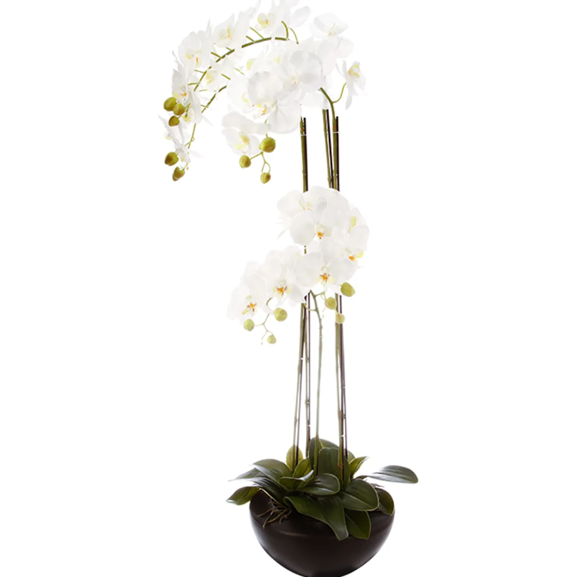 Planta Orquídea Blanca Con Maceta 110cm | Descubre la oferta de Plantas Artificiales que tenemos para ti. Flores Artificiales que mantendrán tu hogar siempre decorado | Color: Blanco | Medidas: 110x36cm | Material: Dolomita, Polietileno, Metal | Marca: Atmosphera