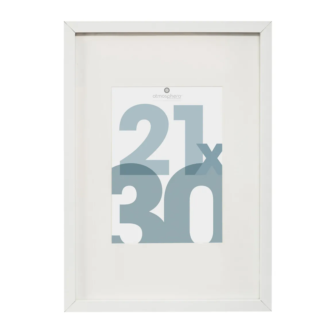 Portarretrato blanco MANU 21x30cm | Descubre este y otros portarretratos y marcos de fotos que tenemos para ti. Recuerda los mejores momentos con los marcos hôma y decora tu casa a juego con tu felicidad | Color: Blanco | Medidas: 31.8×1.8×22.8cm | Material: MDF, Vidrio | Marca: Atmosphera | Colección: MANU