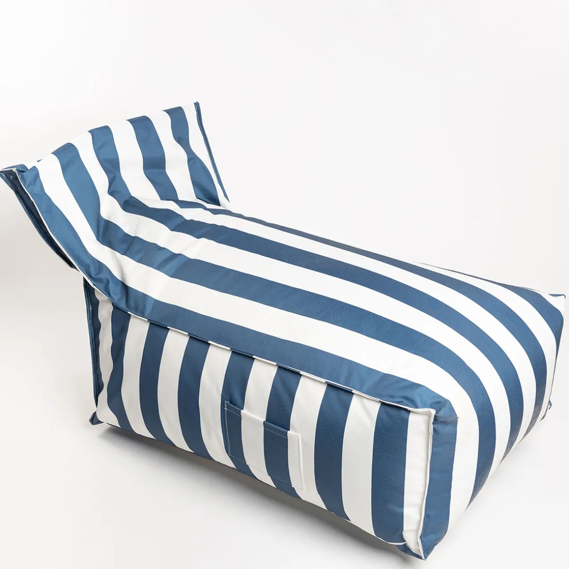 Puf sofa impermeable rayas blancas y azules | 110x75x75cm | Color: Blanco y azul | Medidas: 110x75x75cm | Material: Poliéster impermeable