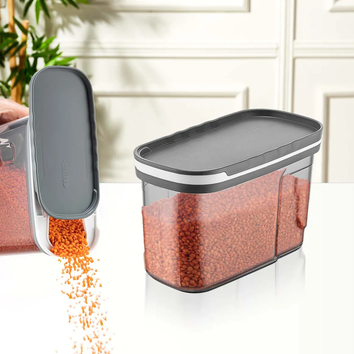 Recipiente Almacenamiento Exclusive 1.2L | ¿Sabías que tu cocina puede ser el lugar más feliz del mundo? Descubre nuestra gama de utensilios para una cocina llena de Happy Home Living. ¡Cocinar con los utensilios adecuados es mucho más fácil! | Color: Gris | Medidas: 13.3×9.5×19.9cm | Material: Plástico, Polipropileno | Capacidad: 1.2L