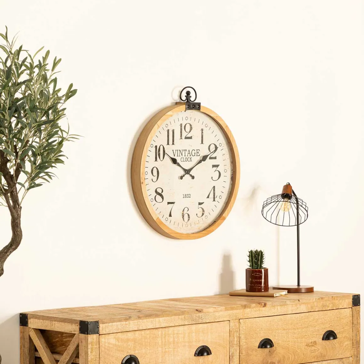 Reloj De Pared Yago Beige 57cm | Funciona con pilas, 1 x LR6 – AA – 1.5 V no incluidas | Descubre nuestros relojes decorativos para tu hogar. Empieza hoy mismo a decorar tu casa con artículos de hôma | Color: Beige | Medidas: 66×6.5x57cm | Material: MDF, Vidrio | Marca: Atmosphera