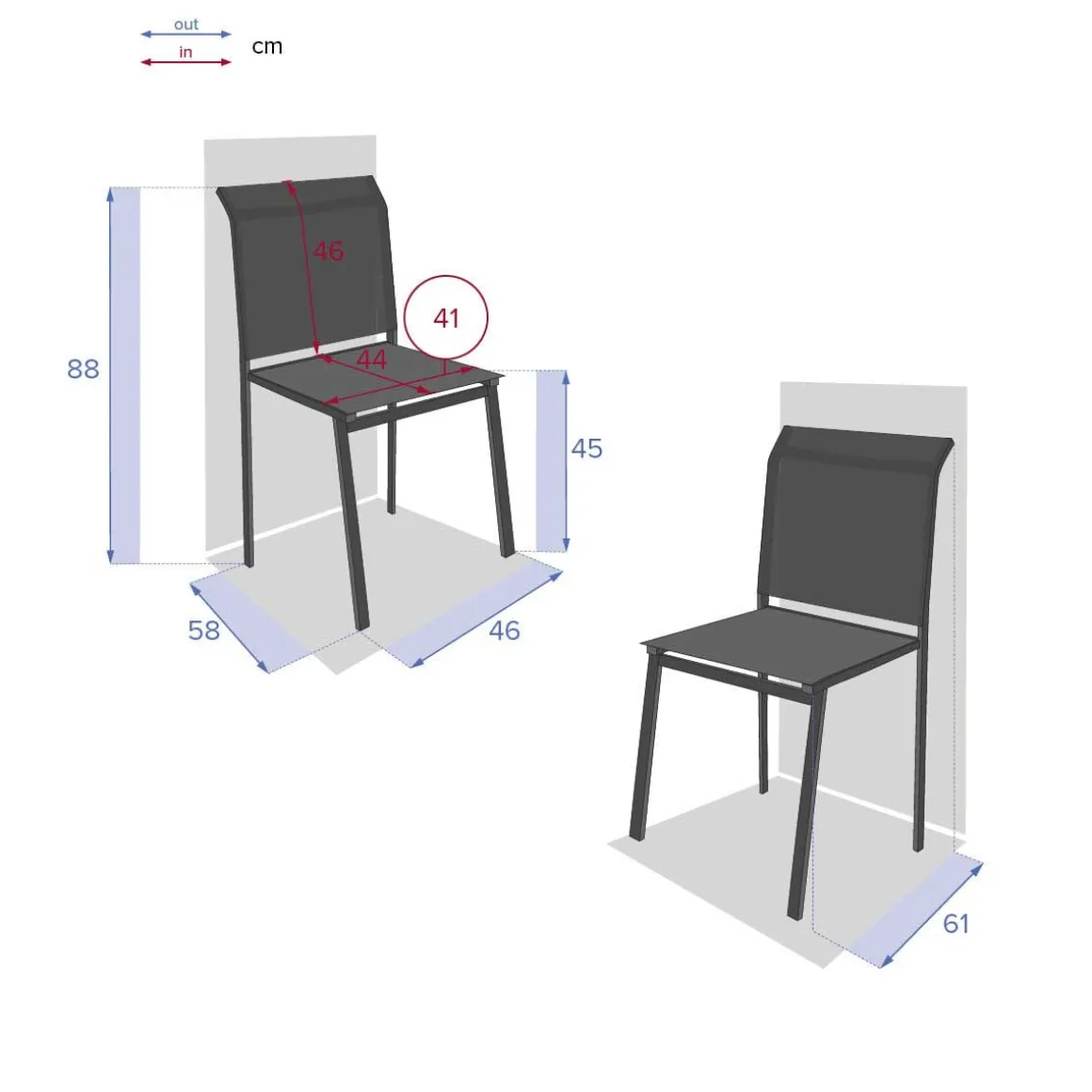 Silla apilable ESSENTIA gris antracita | Déjese llevar por el encanto de la silla de jardín apilable Essentia de Hespéride. Silla Apilable fabricada en aluminio y poliéster, recubierto de Pvc | Medidas: 46x61x87cm | Peso: 2kg | Color: Antracita