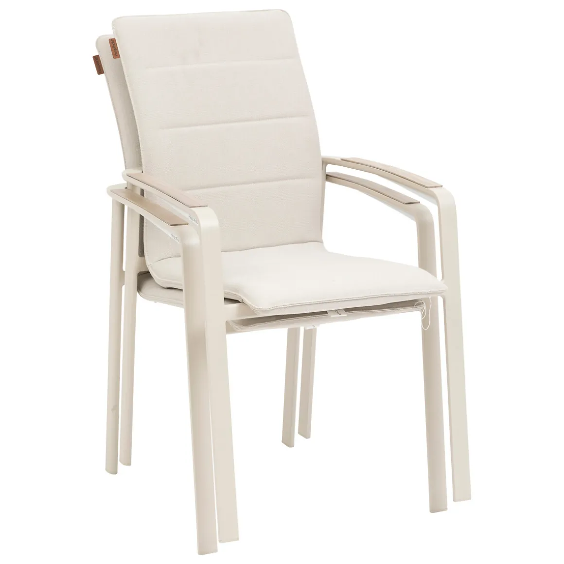 Silla DIESE ivoire y argile | Aluminio y Textileno | 57.95×57.5x67cm | Estructura con tratamiento epoxi antioxidante. | Producto apilable, fácil de almacenar para un verdadero ahorro de espacio. | Tejido con tratamiento hidrófugo que permite que el agua resbale sin penetrar en el material. Tejido textileno acolchado para un máximo confort. | Espuma de secado rápido. | Producto tratado contra la decoloración. | Peso máximo soportado: 100Kg | Color: Ivoire y Argile | Medidas: 95×57.5x67cm | Material: Aluminio | Marca: Hespéride