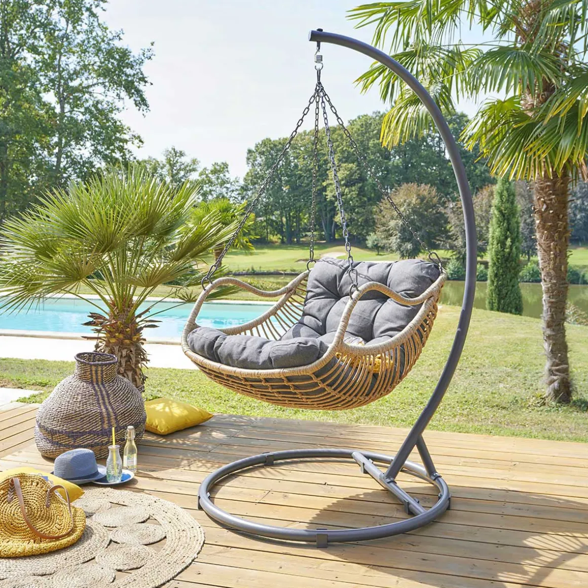 Soporte columpio PANAO | 210x113x113cm | Estructura tratada con epoxi antioxidante. Estructura tratada con galvanoplastia anticorrosión. Peso máximo soportado: 110 kg | Color: Gris oscuro | Dimensiones: 210x113x113cm | Material: Acero | Marca: Hespéride