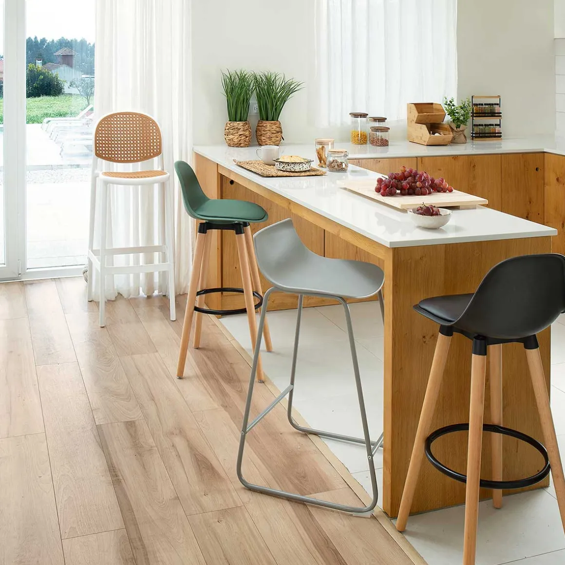 Taburete de bar MAXON verde caqui | 91.5×39.5x43cm | Altura del asiento: 71.5cm Reposapiés: 30cm | ¡Haz de tu cocina el lugar más feliz del mundo! Descubre nuestra gama de muebles de cocina y crea un espacio feliz, práctico e inspirador para tus comidas. homastores.com, ¡Donde todo es apetecible! | Medidas: 91.5×39.5x43cm | Material: Poliuretano, Metal, Polipropileno, Madera de Haya | Marca: Atmosphera