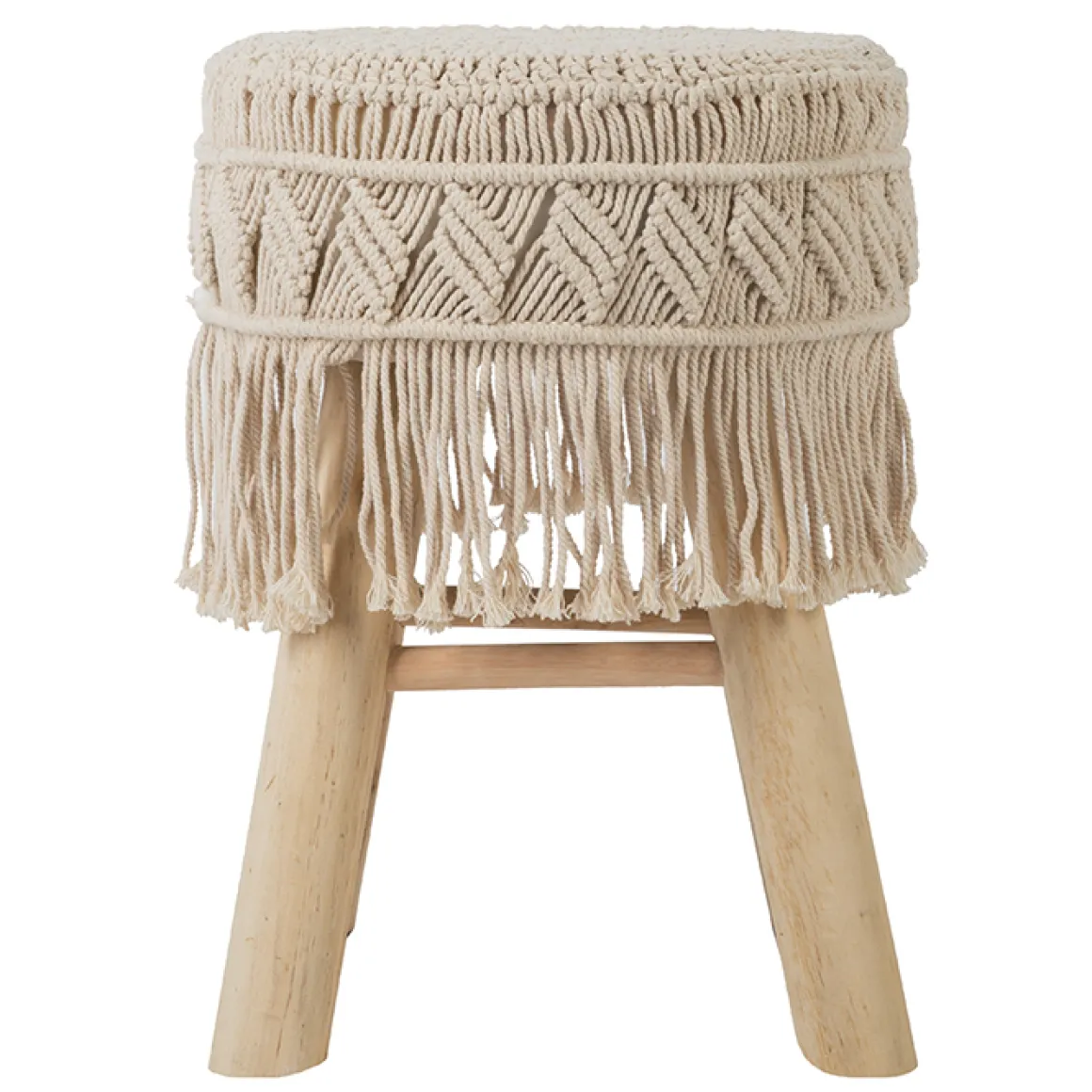 Taburete De Macramé Patas Madera 32x42Cm