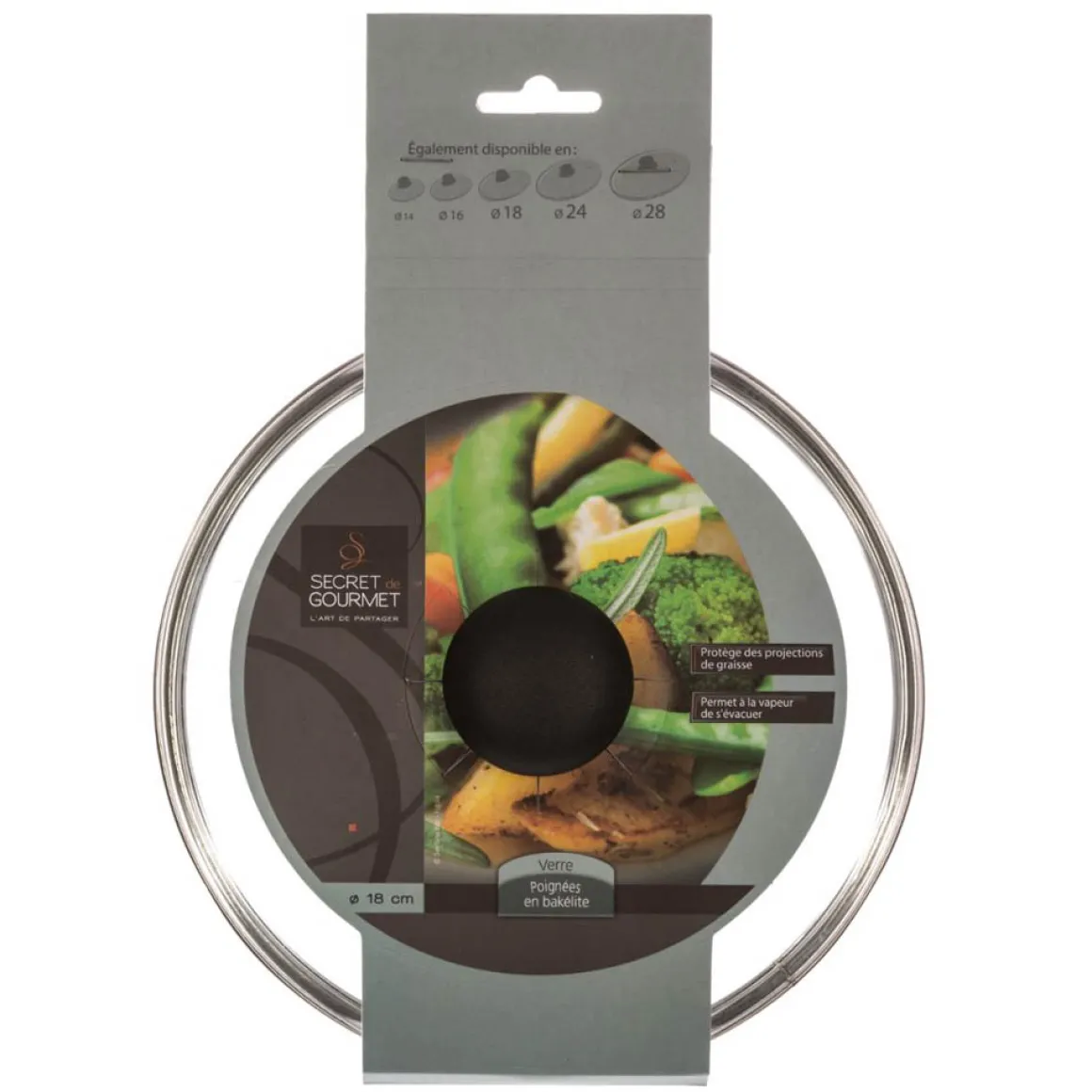 Tapa De Vidrio Para Cacerola | 18cm | Protege contra salpicaduras de grasa | Permite la salida del vapor | Descubre todo para tu cocina y horno en homa.es . Ollas, sartenes y cacerolas para cualquier tipo de cocina | Color: Transparente | Medidas: 5.5x18cm | Material: Vidrio, Baquelita, Acero inoxidable | Marca: Secret D’Gourmet
