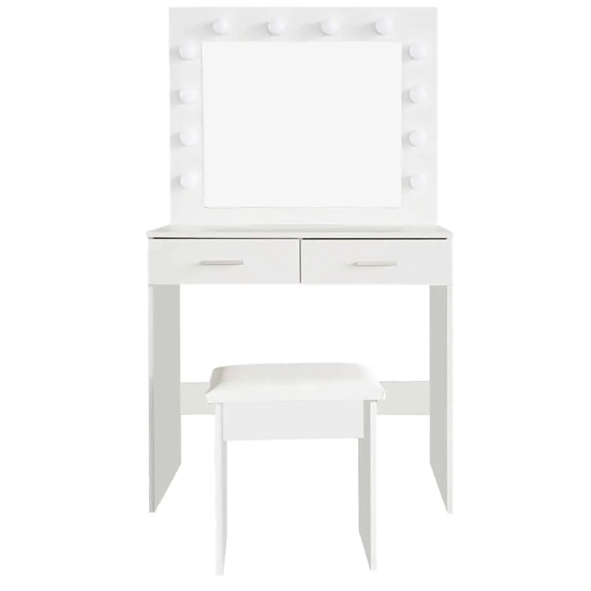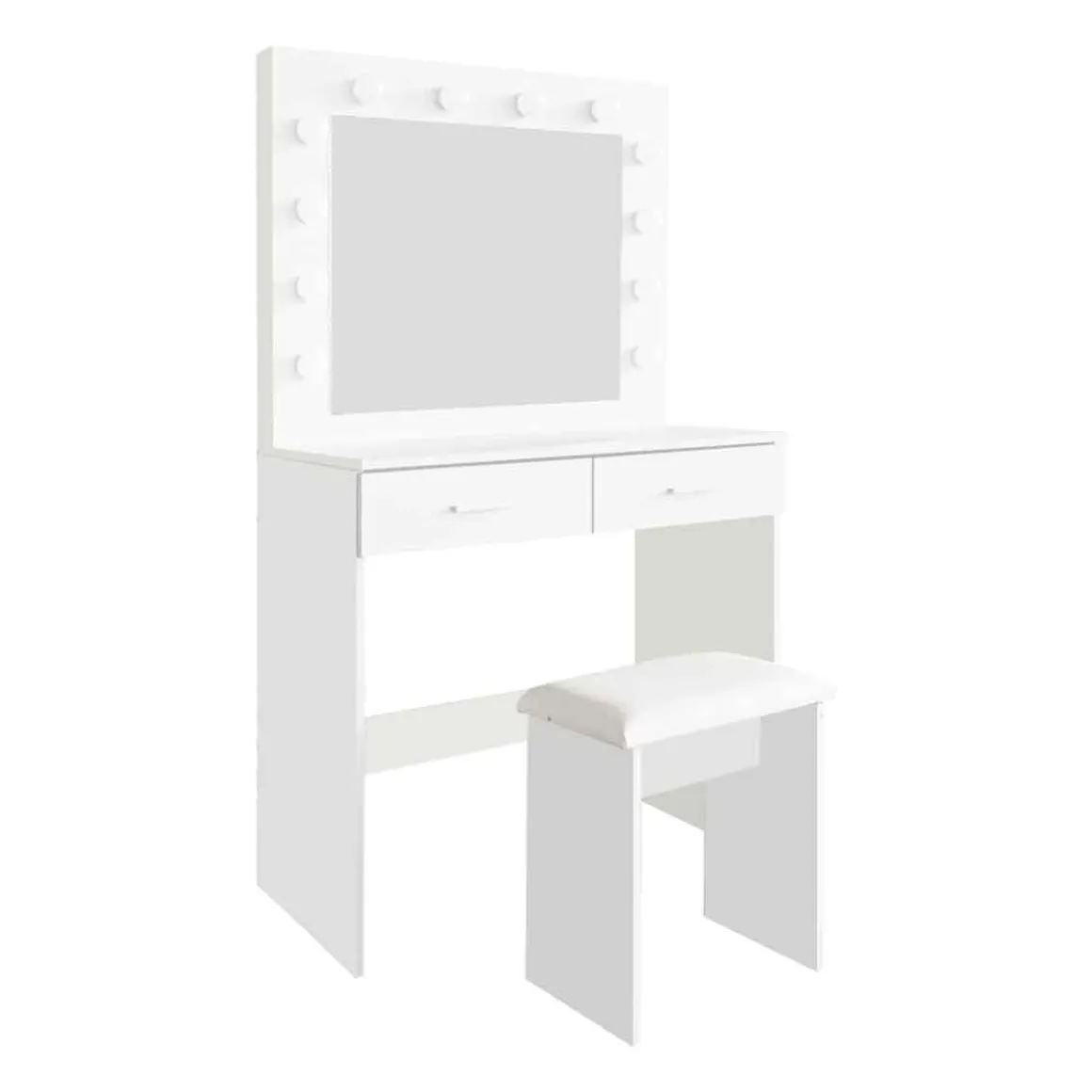 Tocador ATICA con espejo y taburete | Tocador: 140x40x80cm, Taburete: 45x40x24cm, Espejo: 60x50cm, 12 LEDs | Descubre los muebles de apoyo que tenemos para ti. Los muebles Hôma están diseñados para Home Happy Living. Los mejores artículos de decoración están aquí. | Color: Blanco | Tamaño: 140x40x90cm | Material: MDF