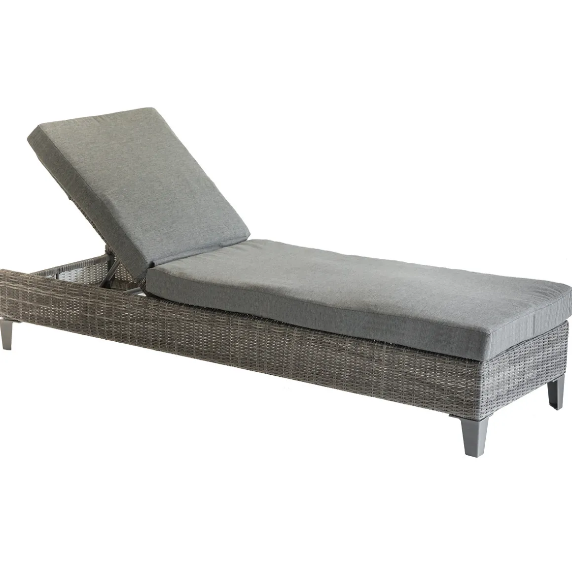 Tumbona MALTA terre d’ombre de ratán | Gracias a sus 5 posiciones, podrás aprovechar al máximo tu tumbona de piscina | Estructura con tratamiento epoxi antioxidante. Funda de cojines removible para facilitar la limpieza. Tejido con tratamiento hidrófugo que permite que el agua resbale sin penetrar en el material. Producto tratado contra la decoloración | Color: Gris | Medidas: 89x65x195cm | Material: Aluminio, Ratán sintético | Marca: Hespéride