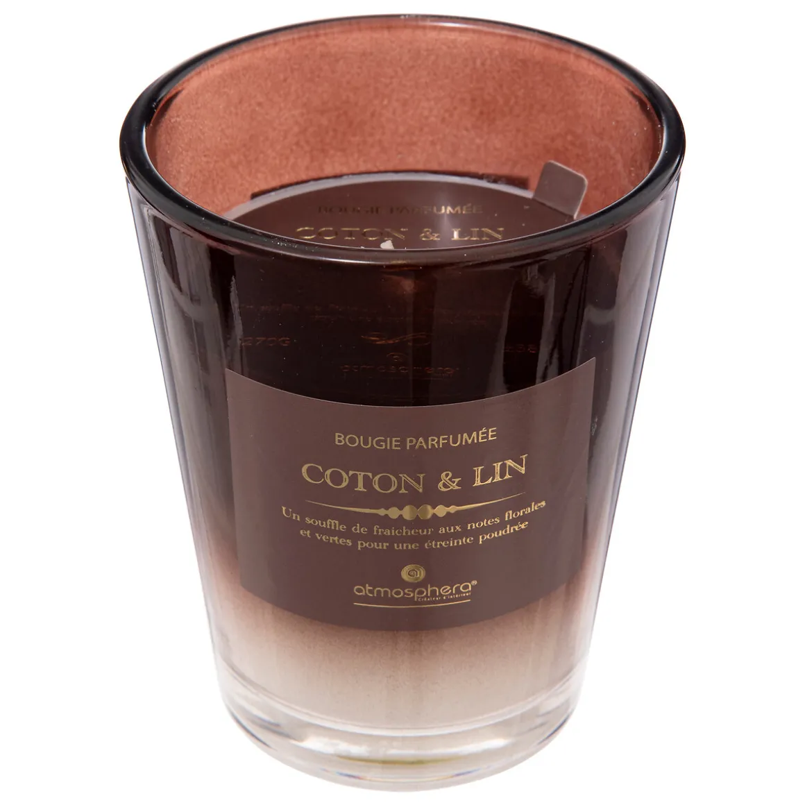 Vela Perfumada Frasco De Vidrio 270g | Algodón y Lino | Descubre nuestra gama de velas y velones decorativos para el hogar. La mejor decoración para tu casa está en hôma | Medidas: 12.4×10.2×10.2cm | Material: Parafina, Vidrio | Aroma: Algodón y Lino | Capacidad: 270g | Marca: Atmopshera