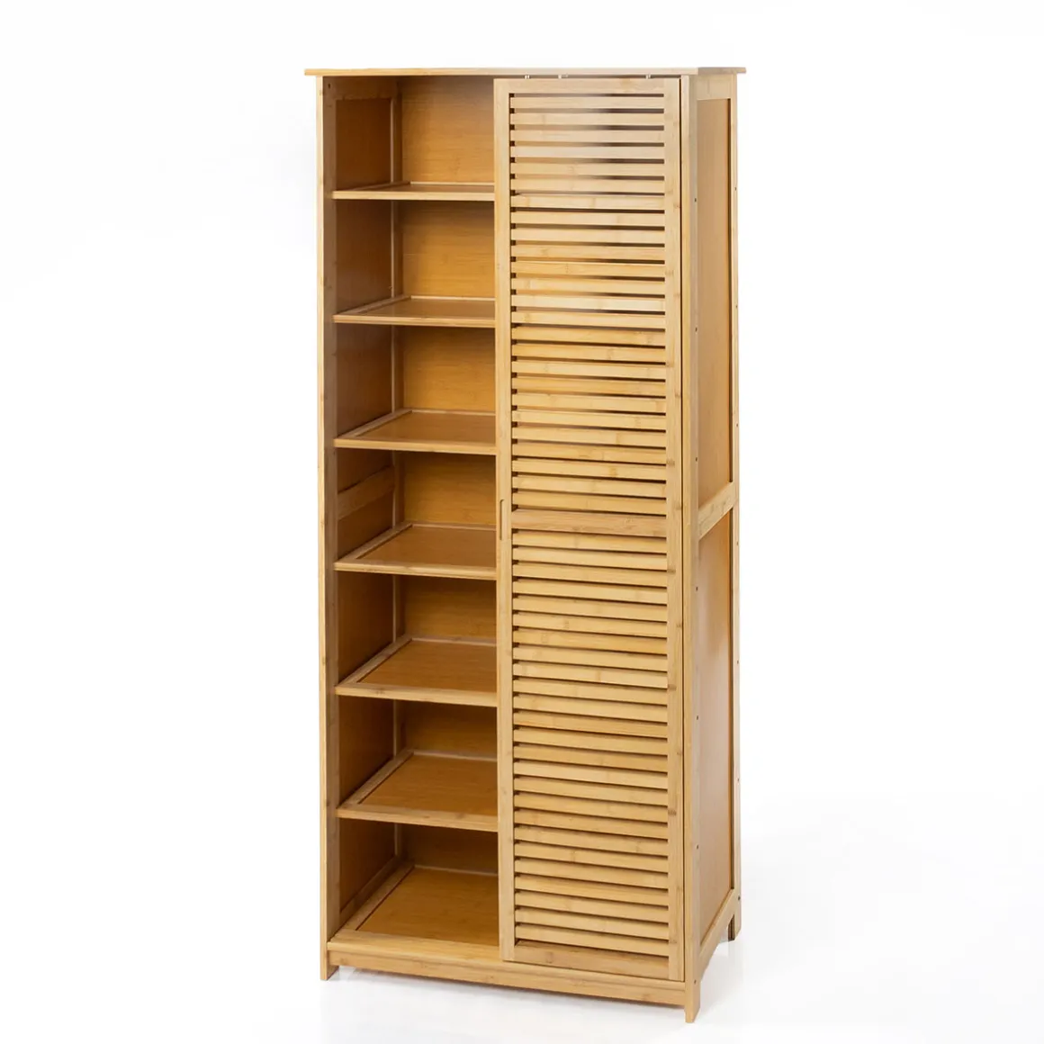 Zapatero Veneza Natural Puerta Corrediza 180cm | 7 Estantes | Conoce este y más artículos que tenemos disponibles para tu closet . Almacenar y organizar tus armarios y roperos nunca fue tan fácil. Descubre la gama de Almacenaje hôma | Color: Natural | Medidas: 180x35x80cm | Material: Bambú, MDF